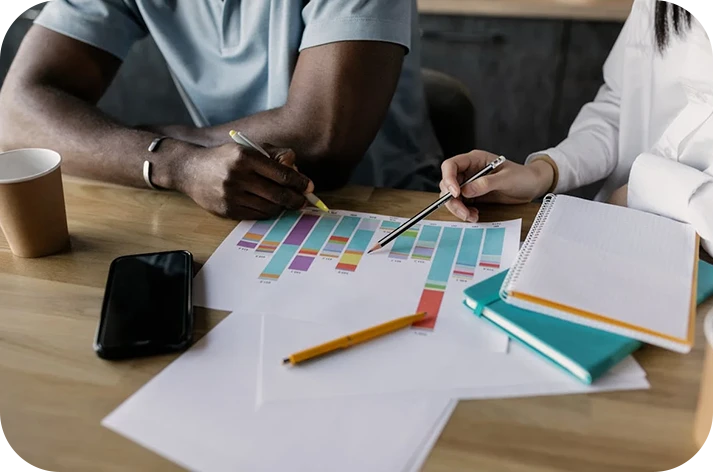 Professionals using a laptop to monitor real-time marketing performance metrics and ROI data.