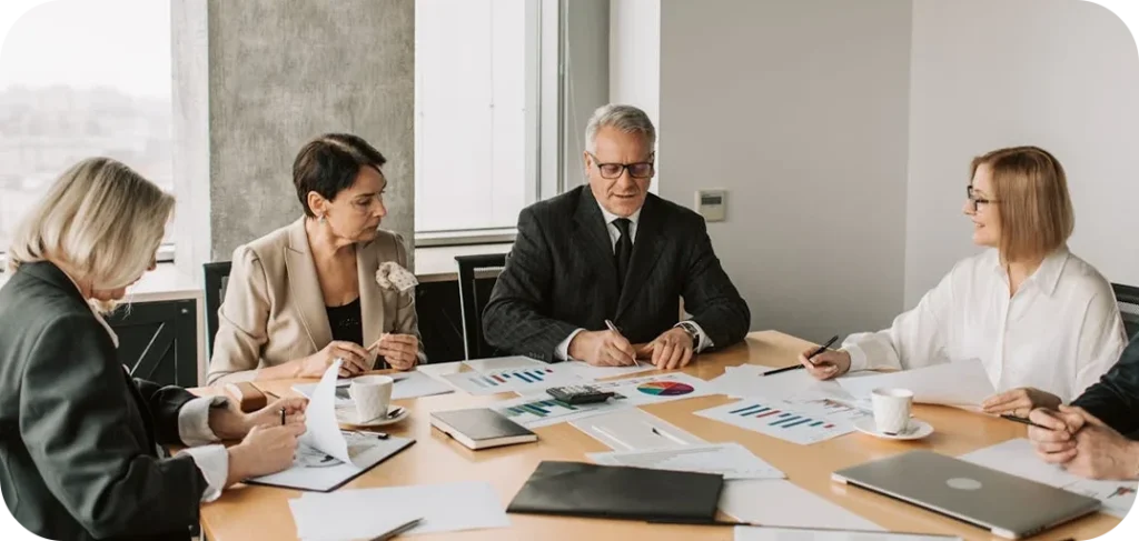 Professionals using a laptop to monitor real-time marketing performance metrics and ROI data.